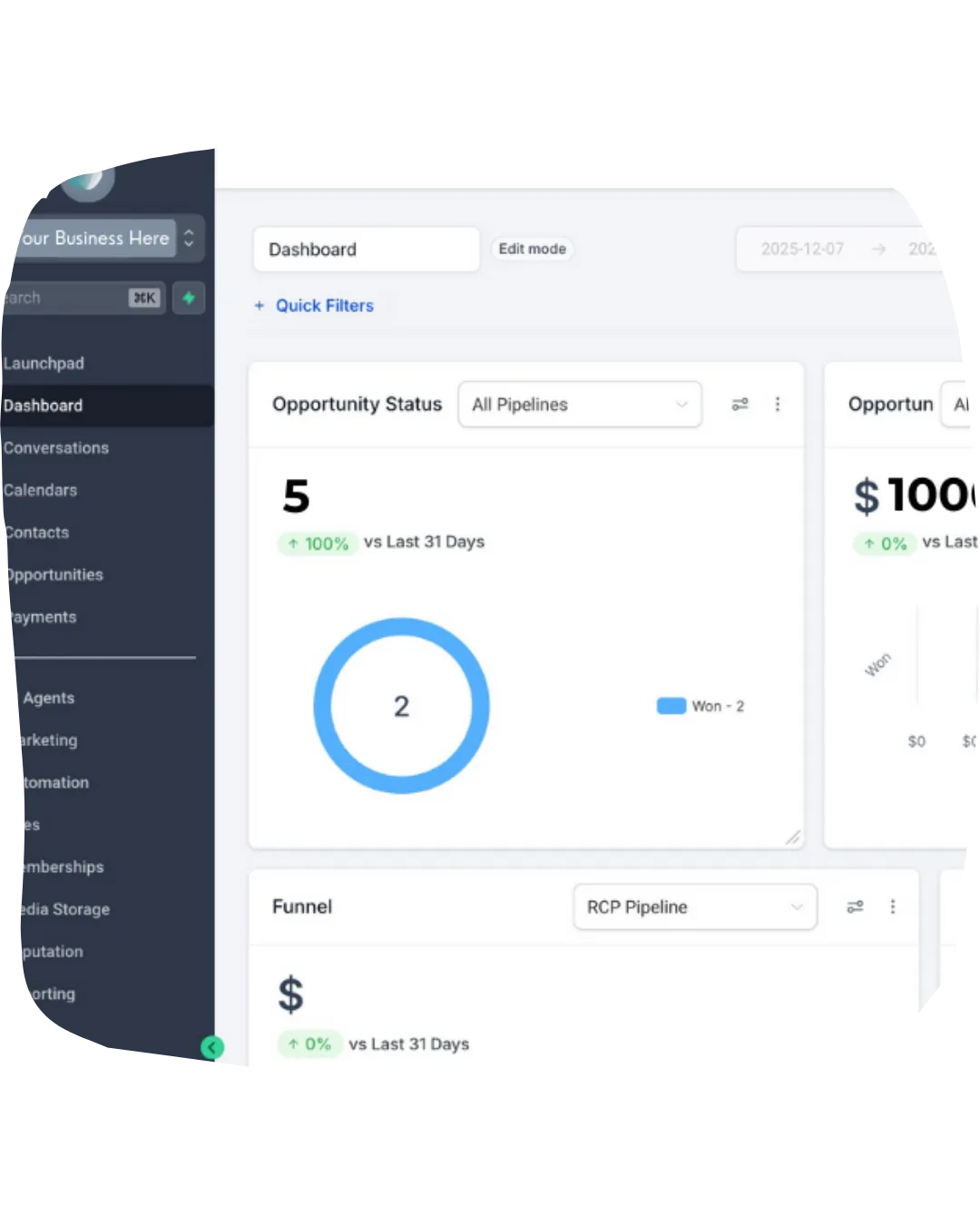 We custom-set up your entire dashboard quickly, usually within 24–48 hours, then guide you through how to use it so you can run your business inside it confidently.